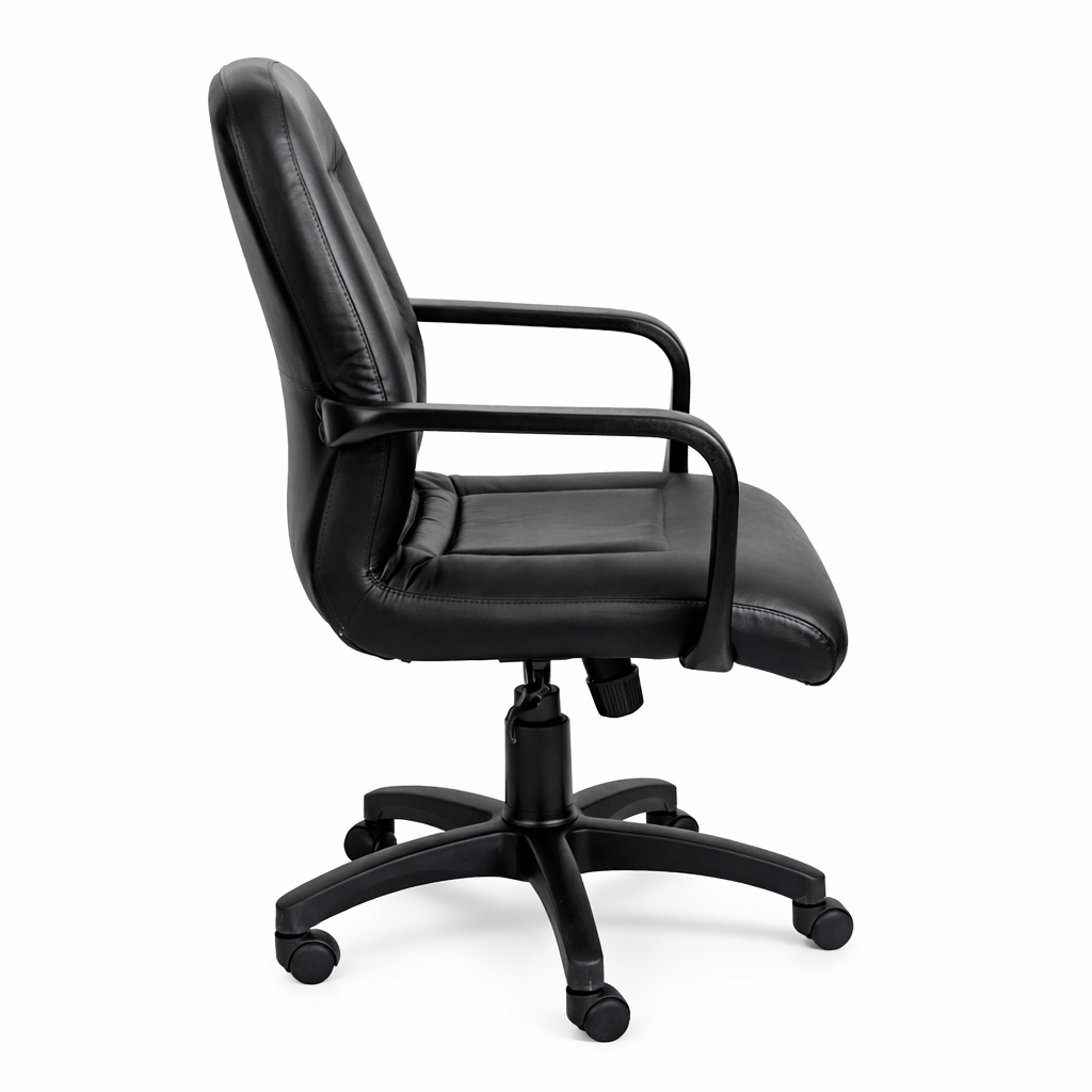 Su estructura de madera en asiento y respaldo, revestida en espumas que mezclan suavidad y resistencia, proporciona un confort duradero. Disponible en tapizados de tela, cuero o vinilo, ofrece opciones personalizadas para satisfacer diversos gustos. Con un sistema de 3 posiciones con bloqueo y mecanismo de regulación de tensión manual, permite ajustes precisos para mayor comodidad. Los brazos fijos de poliuretano y la base tipo estrella de 5 puntas fabricada en Nylon con ruedas del mismo material aseguran estabilidad y movilidad suave.