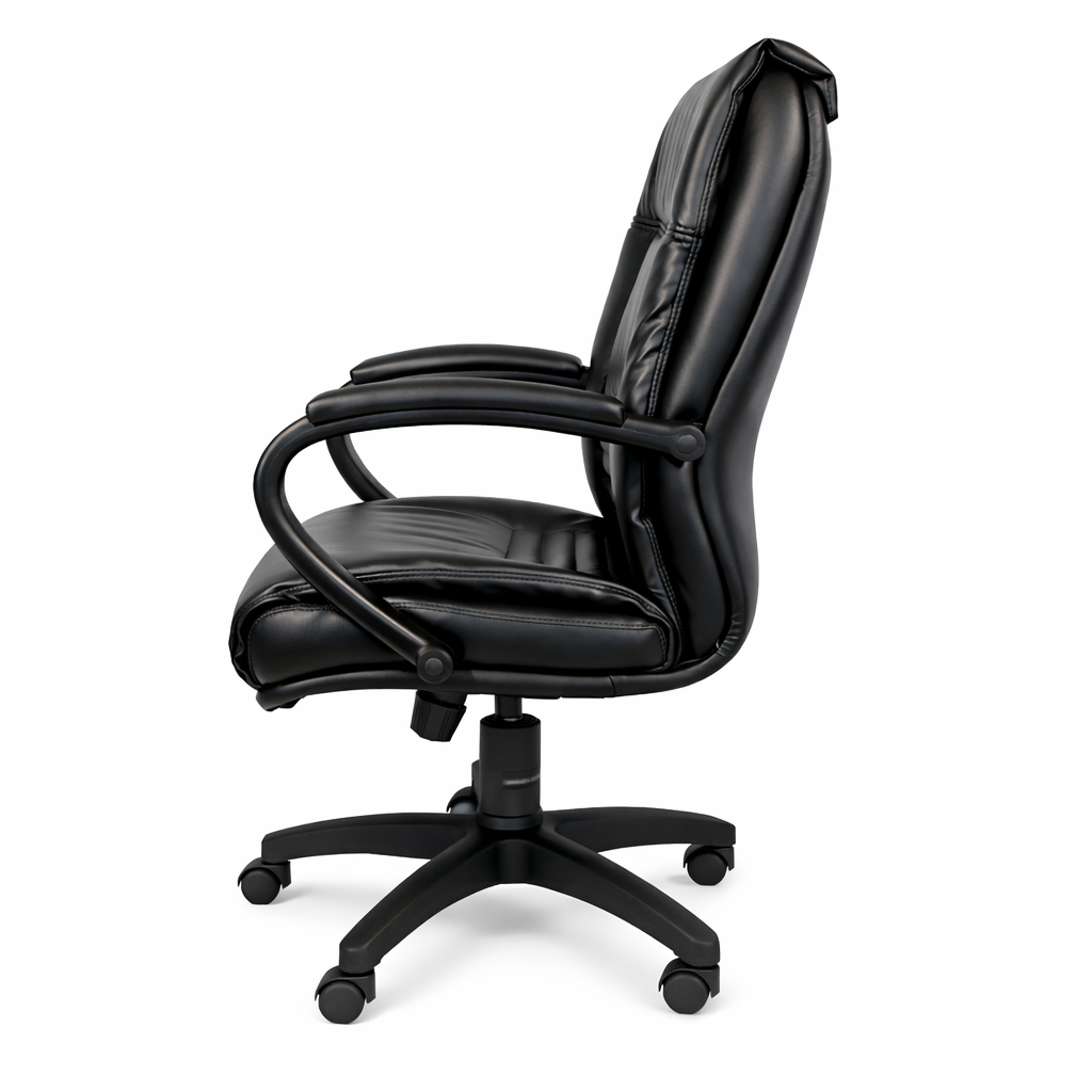 Con estructura interna de madera, espumas de alta densidad y tapizado en tela, cuero o vinilo, ofrece durabilidad y estilo. Incluye mecanismo de inclinación con 3 posiciones, brazos fijos de poliuretano y base de nylon con ruedas. Fabricación 100% propia y soporte extra blando de napa acolchada aseguran comodidad prolongada.