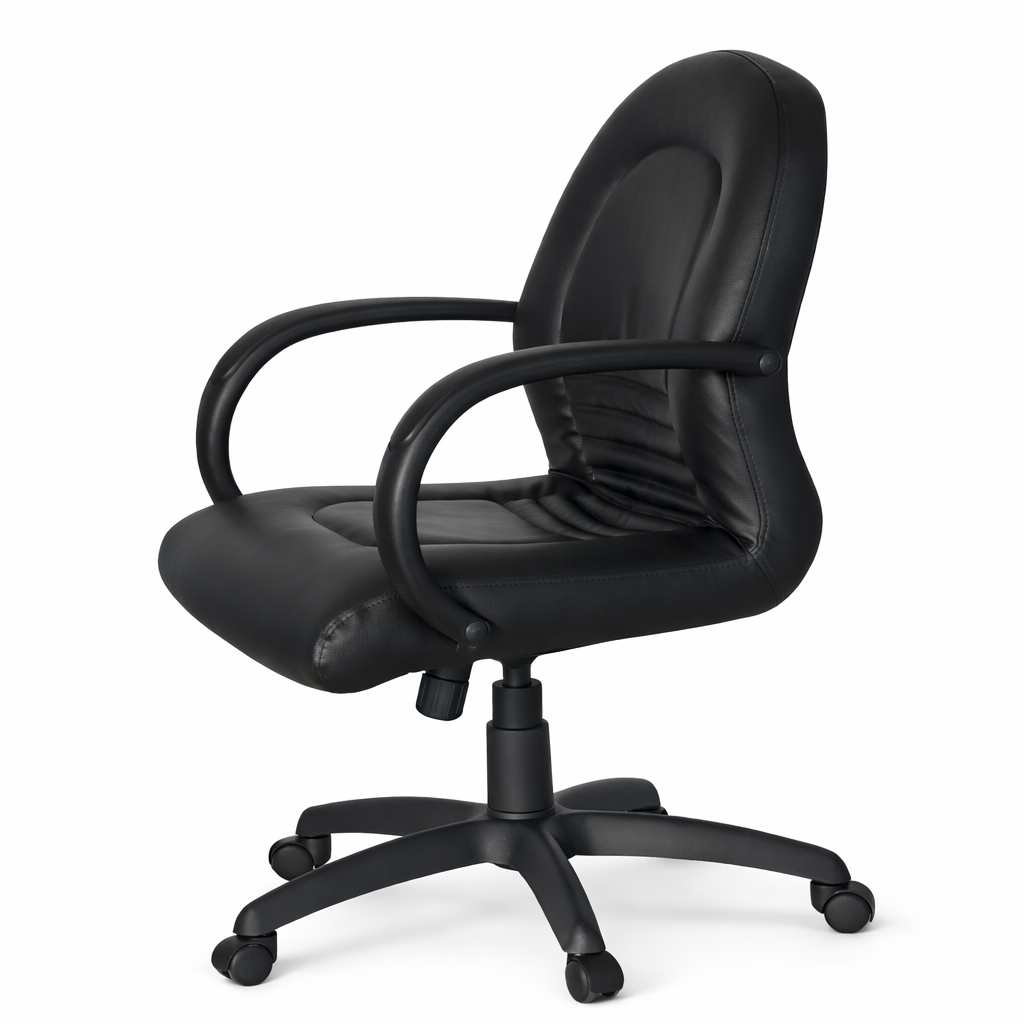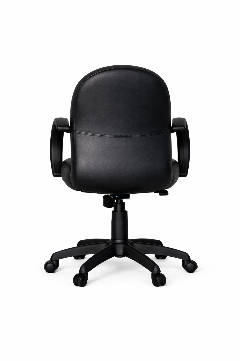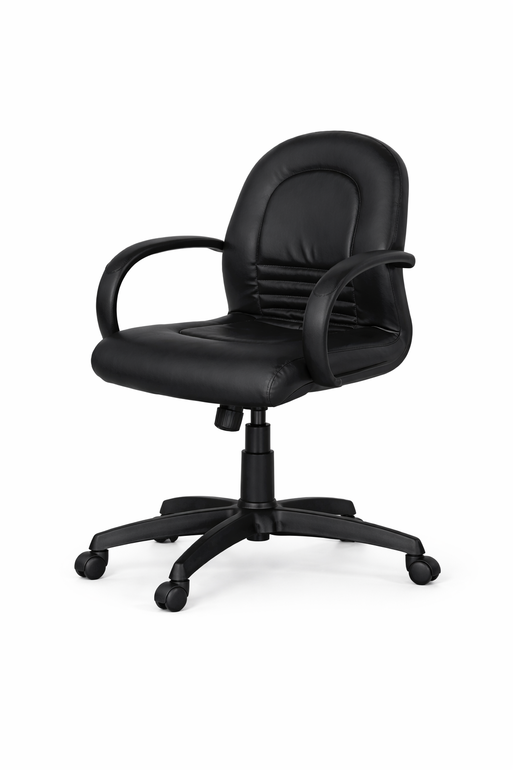 Con estructura interna de madera en respaldo y asiento, y espumas de alta resistencia tapizadas en tela o vinilo, ofrece durabilidad y comodidad. Equipada con mecanismo de inclinación ajustable, apoyo lumbar fijo y brazos de poliuretano, garantiza ergonomía adecuada. La base de estrella de nylon con ruedas proporciona movilidad suave y estabilidad.