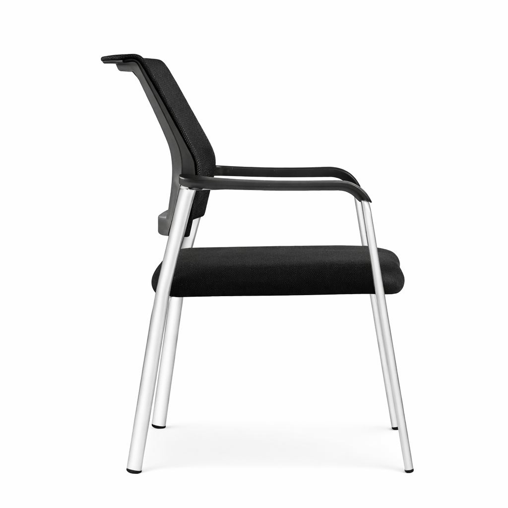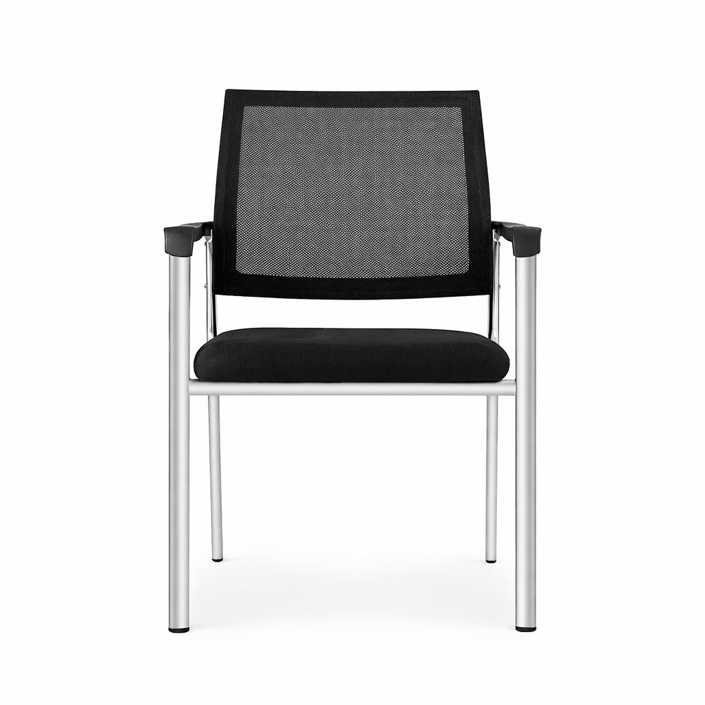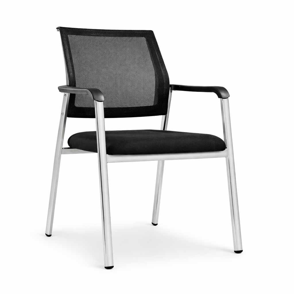 Con un respaldo de plástico tapizado en malla, proporciona un soporte óptimo y una ventilación incomparable para horas de trabajo sin esfuerzo. Su asiento de estructura plástica y tapizado en tela garantiza durabilidad y ergonomía, mientras que los brazos de nylon fijos mejoran la postura del usuario. Construida con una robusta estructura de acero cromado, su base de 4 patas ofrece estabilidad y resistencia. Además, su versión apilable proporciona flexibilidad para adaptarse a cualquier espacio y necesidad de almacenamiento.
