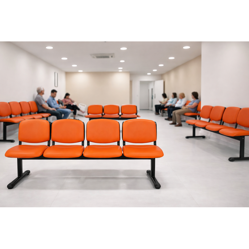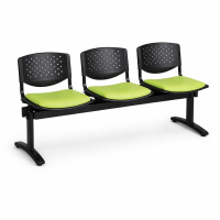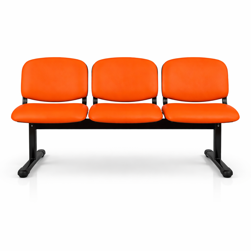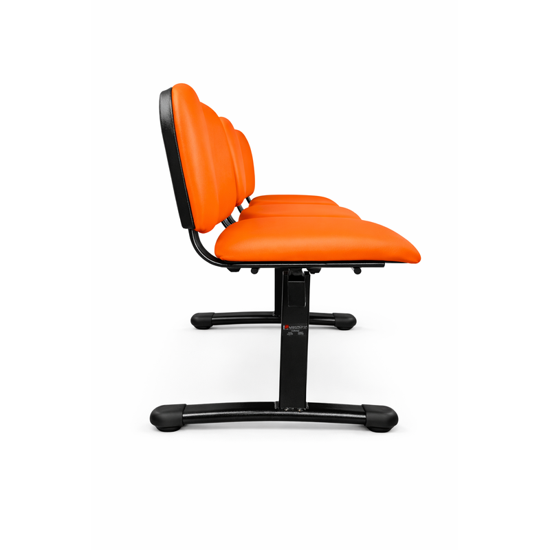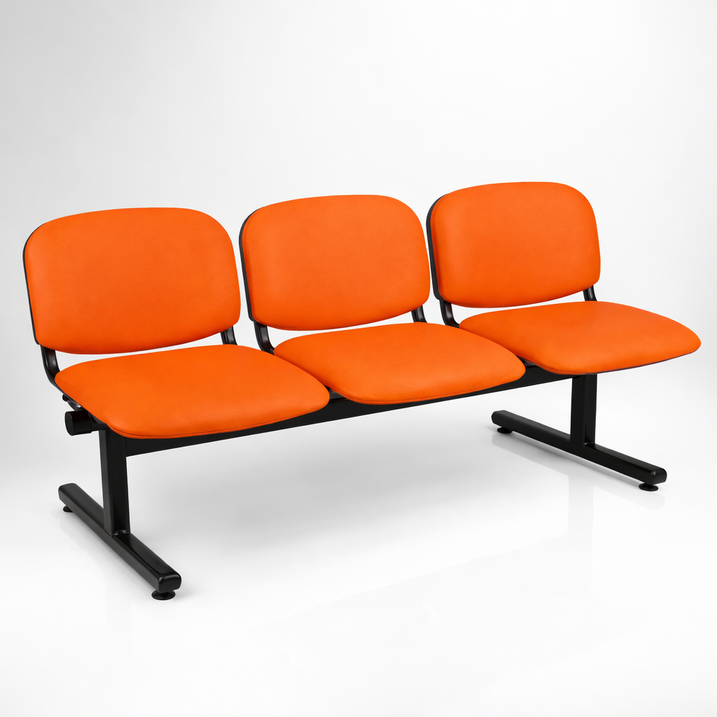 Con asientos y respaldos de madera, espumas de alta calidad y tapizado en tela o vinilo, ofrece confort y estilo. La pata STD tipo T invertida con perfil ovalado y terminales plásticos regulables en altura aseguran estabilidad. La estructura metálica, con viga principal de 2mm de espesor y electropintada en negro, garantiza robustez y durabilidad.
