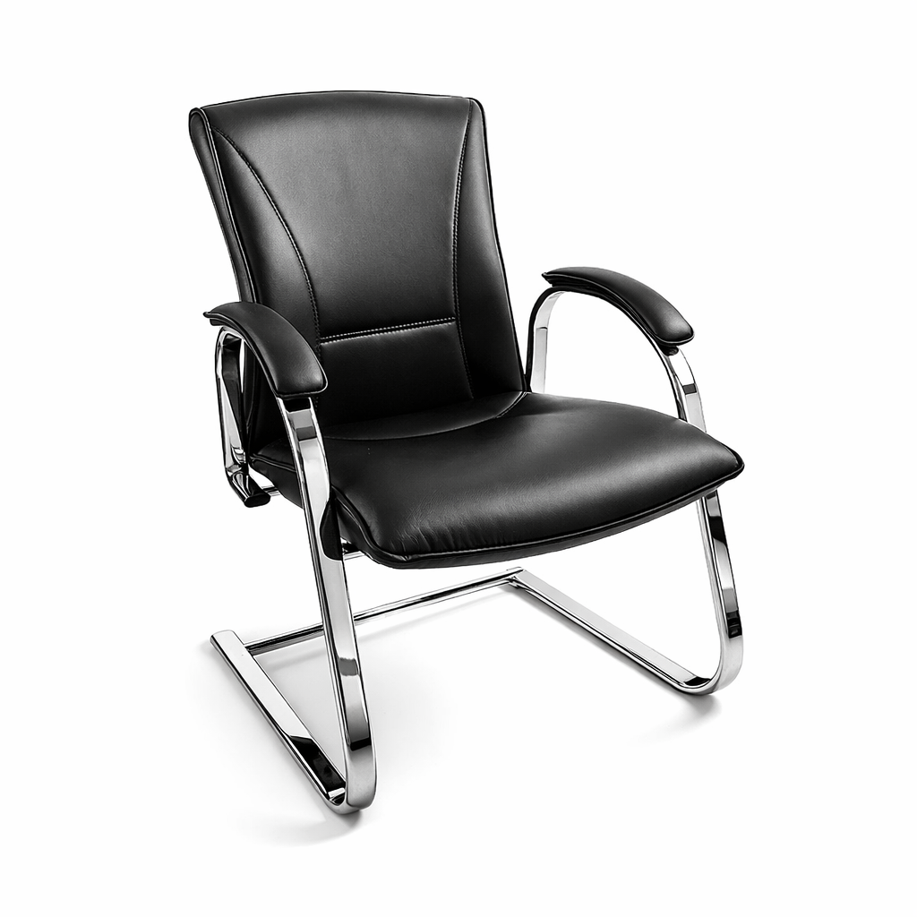 Sillón ergonómico de visita con estructura de líneas curvas y base autodeslizante.