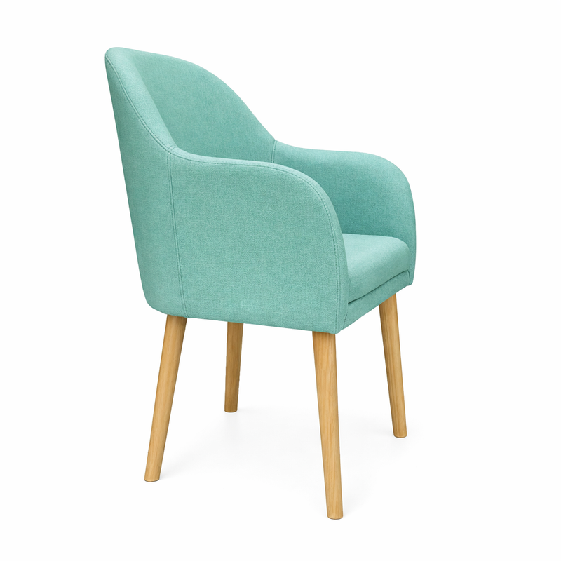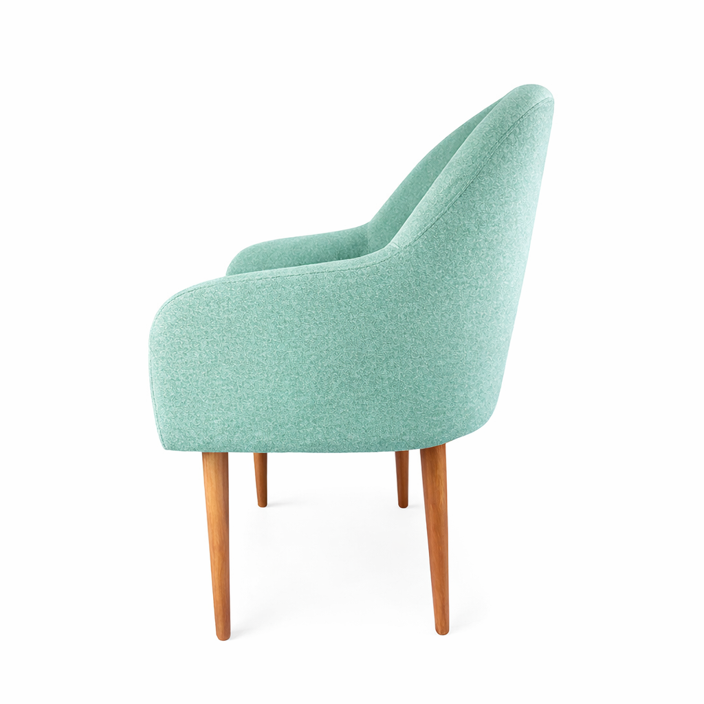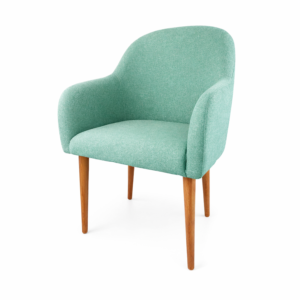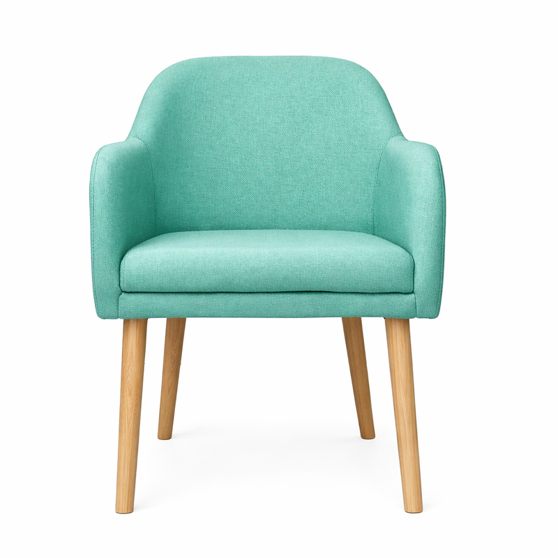 • Patas de madera torneadas con un acabado de barniz natural, que añaden un toque de sofisticación y estabilidad al diseño del sillón.