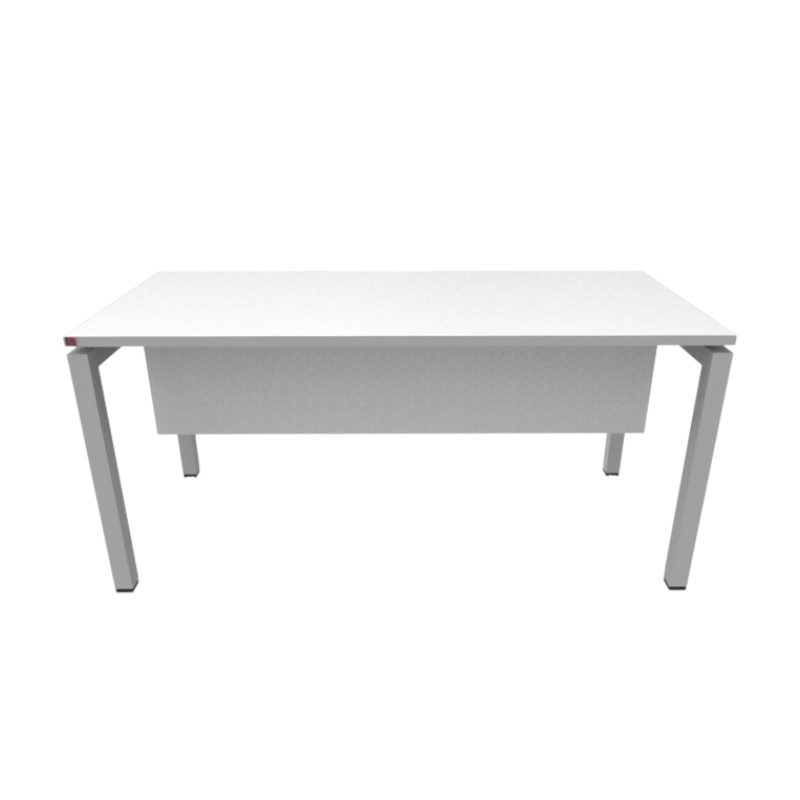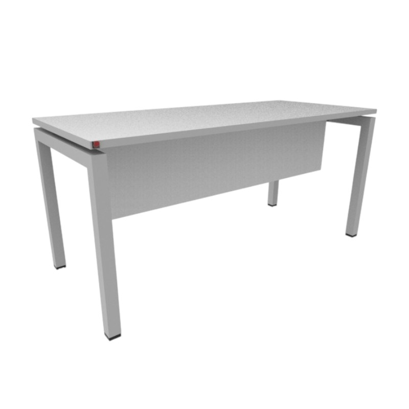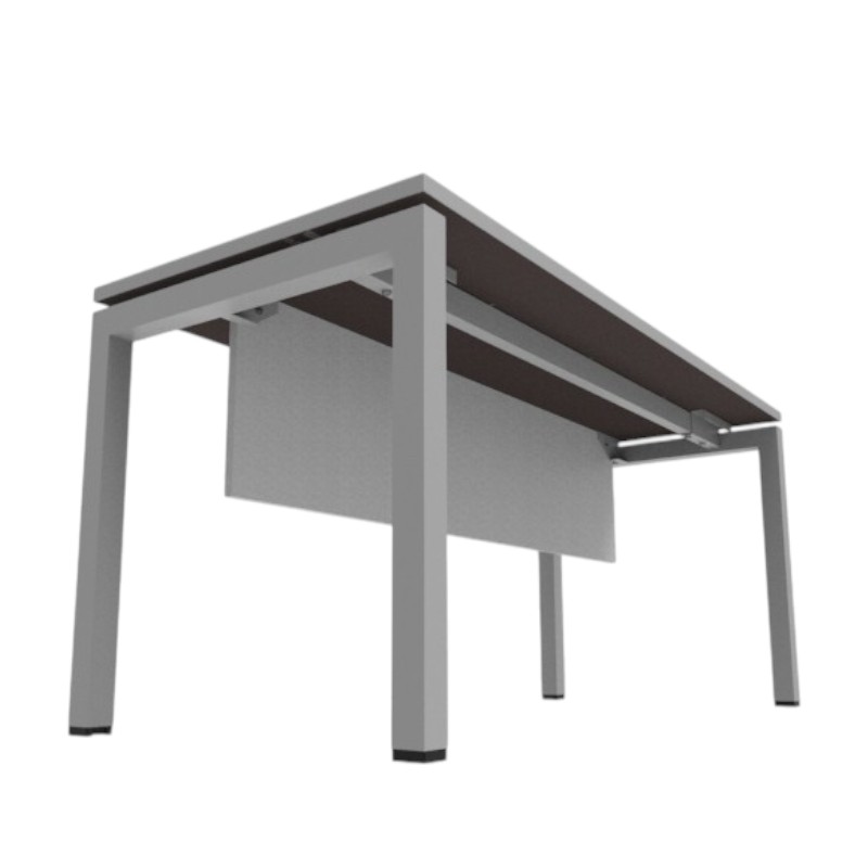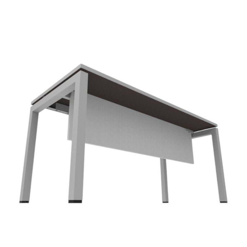 Este modelo incorpora un faldón en melamina que aporta mayor privacidad y un acabado funcional para entornos de trabajo profesionales. Además, cuenta con pasa cable lateral y patines regulables que aseguran comodidad y adaptabilidad.