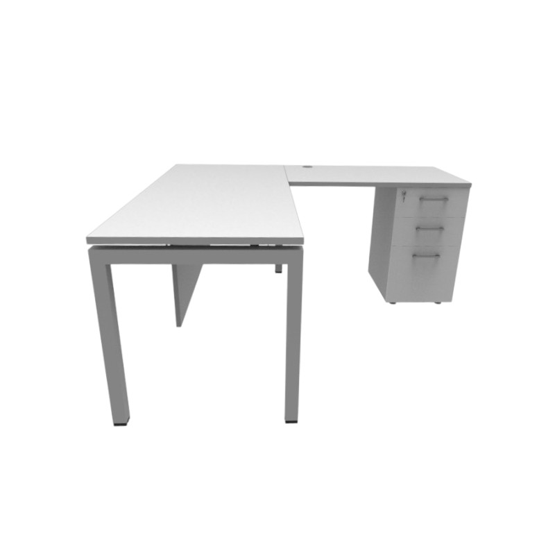 El mueble pedestal cajonera se integra bajo la cubierta lateral y puede configurarse según las necesidades de cada usuario: