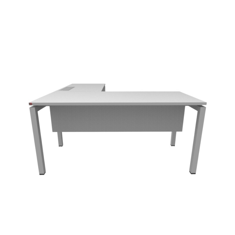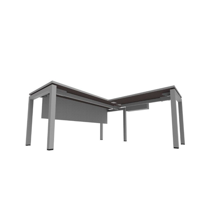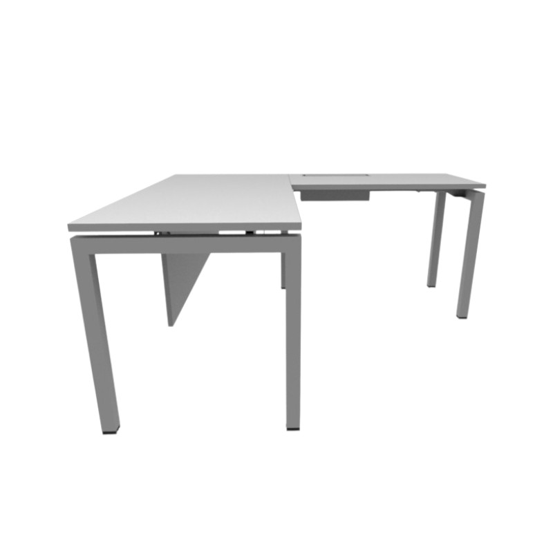 Su diseño conserva las líneas rectas y elegantes de un escritorio ejecutivo, incorporando una cubierta lateral que amplía la superficie de trabajo. El sistema de electrificación queda oculto bajo la cubierta, con una tapa de apertura directa en la parte superior, asegurando un alto nivel de confort y funcionalidad.