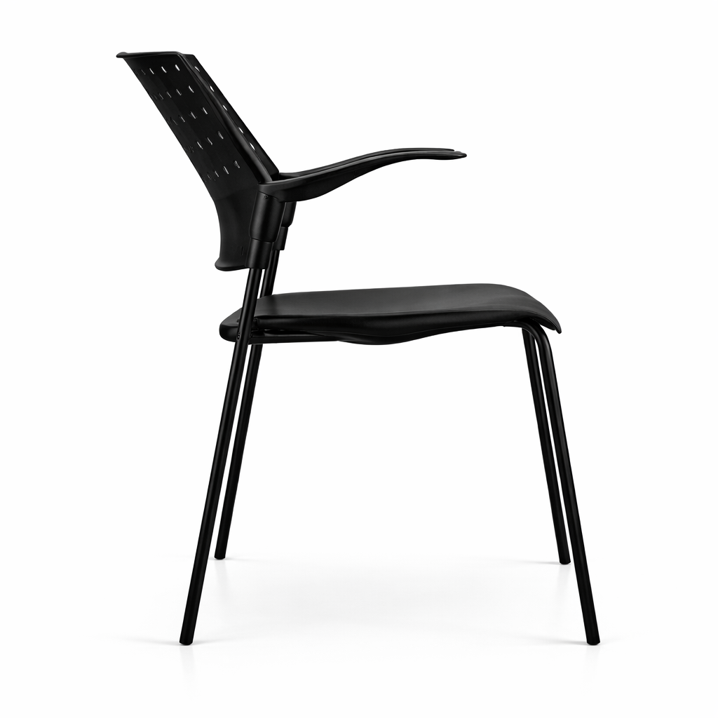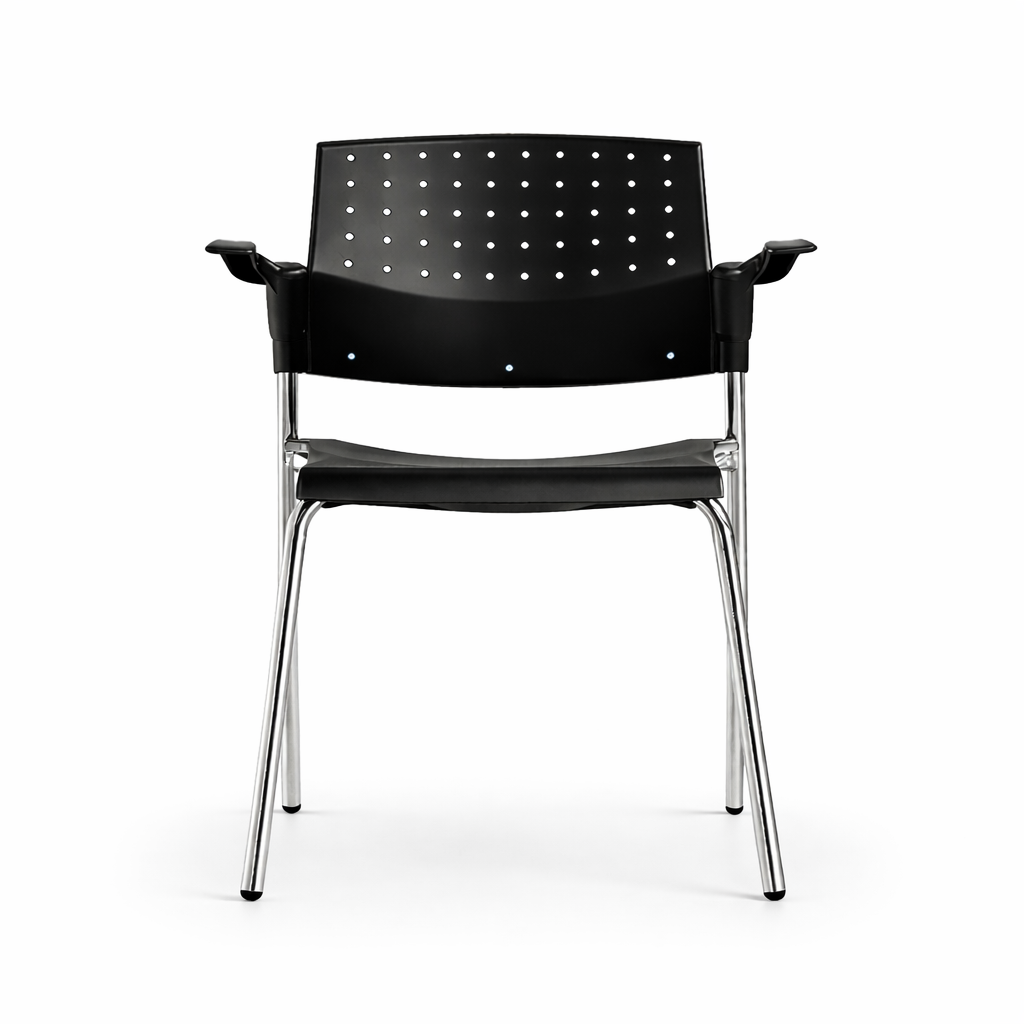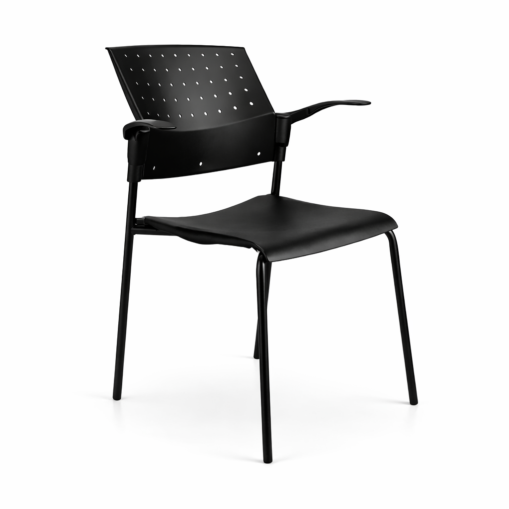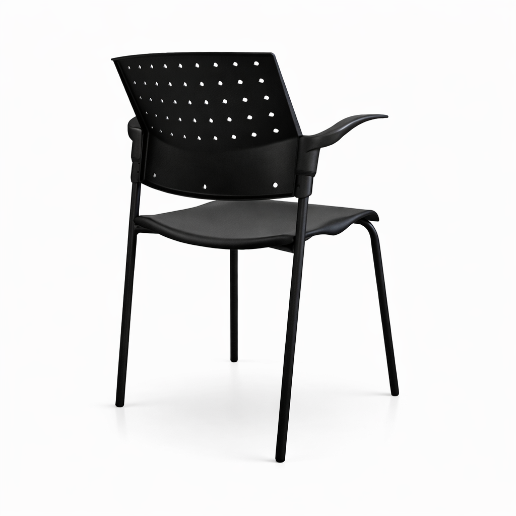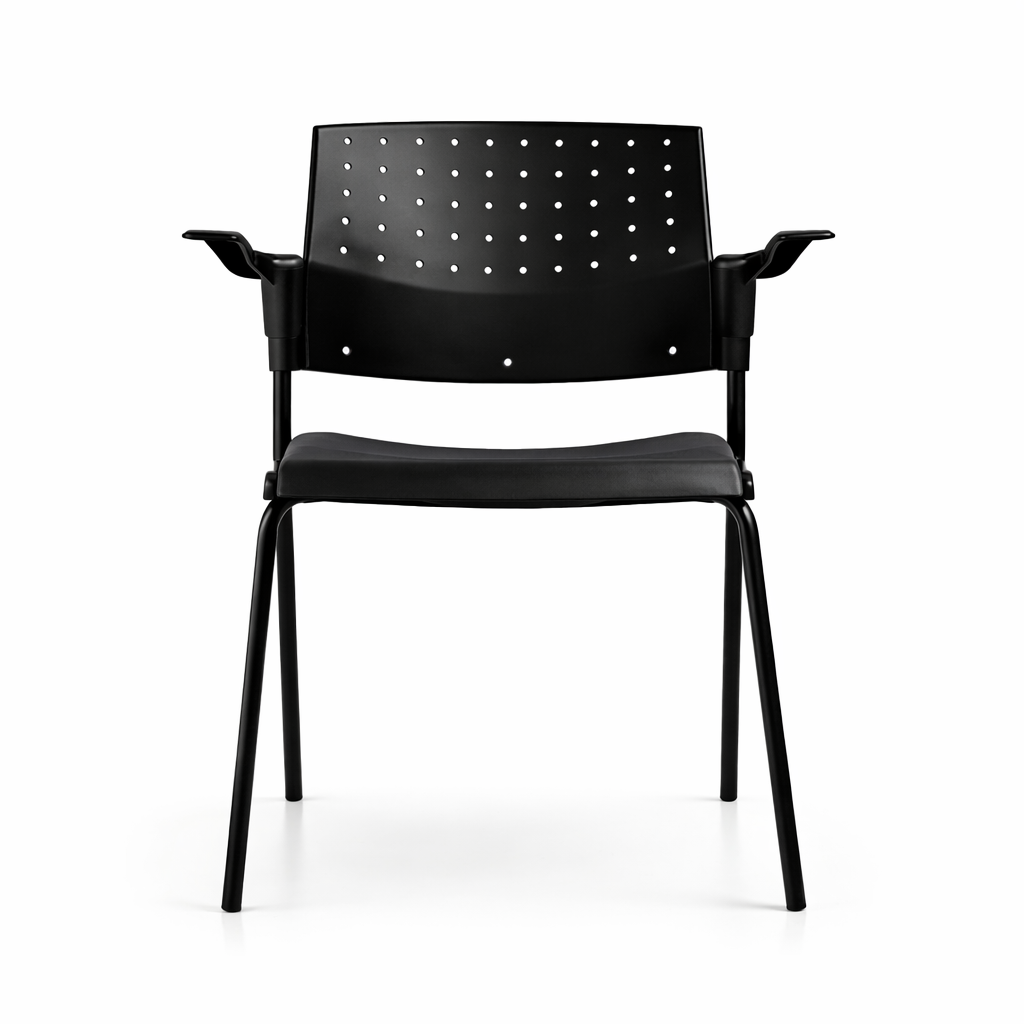 El modelo se ofrece en versiones con o sin brazos fijos de nylon negro certificado SECOND LIFE, adaptándose a distintas configuraciones de espacio y necesidades operativas, consolidándose como una solución técnica, confiable y versátil para entornos corporativos, educacionales y de alto tránsito.