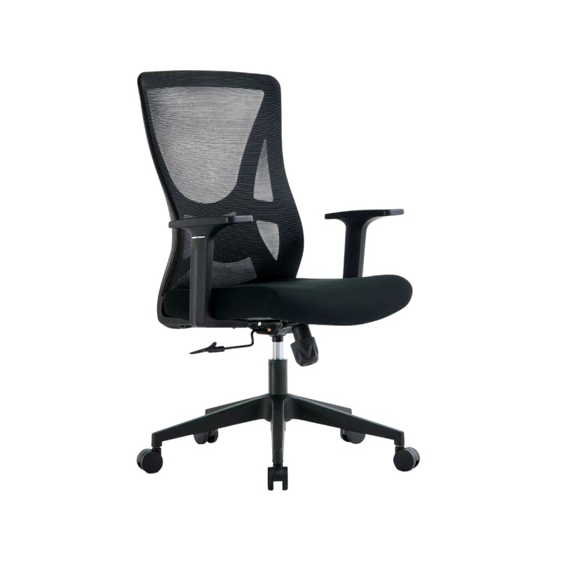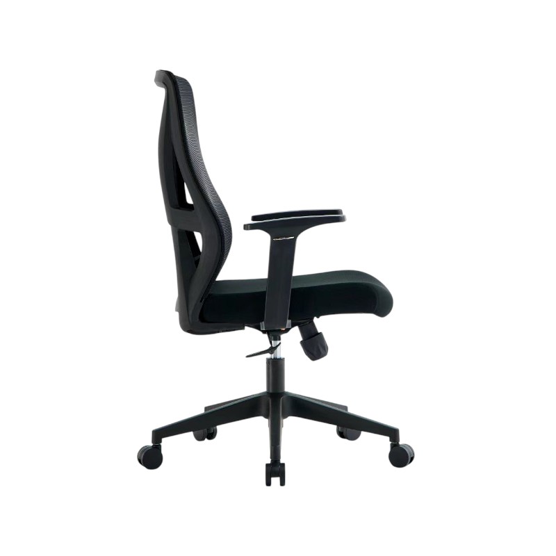 Con respaldo de plástico de alta resistencia y malla, proporciona ventilación y soporte. El asiento, tapizado en tela, ofrece comodidad para largas jornadas. Equipada con un mecanismo de inclinación básica con bloqueo y regulación de tensión manual, es perfecta para adaptarse a tus necesidades. Los brazos ajustables en altura y la base estrella de 5 puntas de plástico (nylon) con ruedas plásticas garantizan movilidad y estabilidad. Ideal para oficinas que buscan ergonomía y funcionalidad. ¡