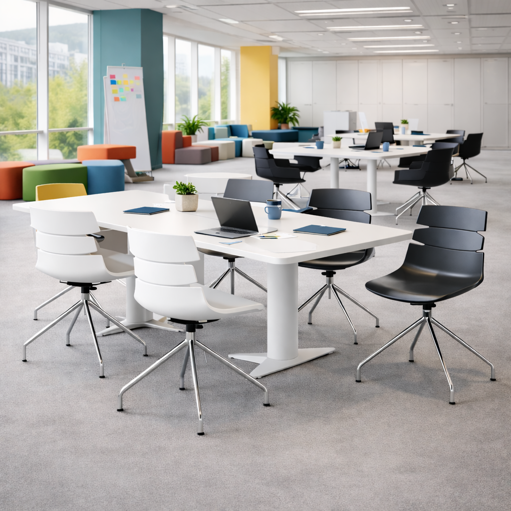 La New Road es una silla moderna y funcional diseñada para casinos, bares y restaurantes que necesitan mobiliario duradero y fácil de mantener. Su asiento de acrílico de alta resistencia ofrece una superficie de fácil limpieza, mientras que su estructura metálica de 4 patas con centro giratorio cromado combina estabilidad, comodidad y diseño sofisticado, ideal para espacios de alto uso.