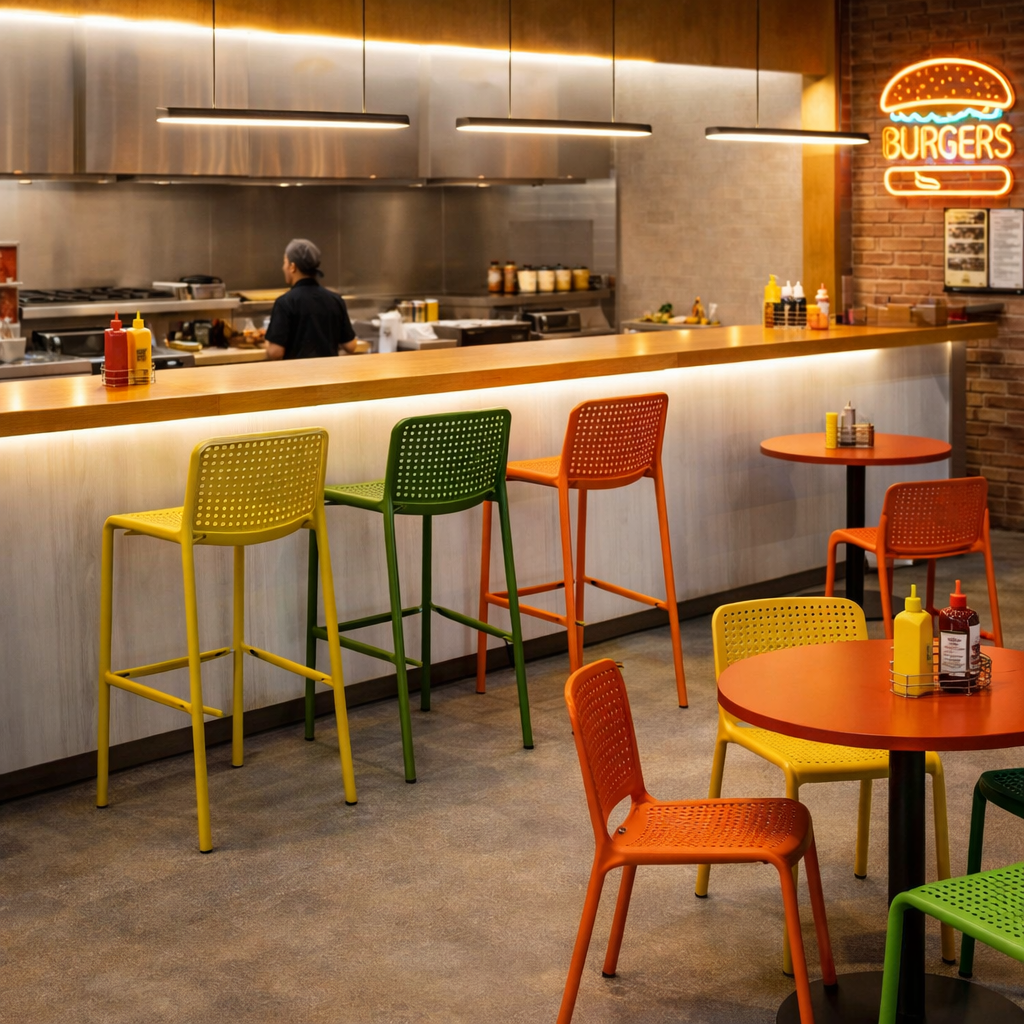 - Ideal para bares, restaurantes, cocinas, áreas de entretenimiento en casa y cualquier entorno que requiera un taburete flexible y resistente.
