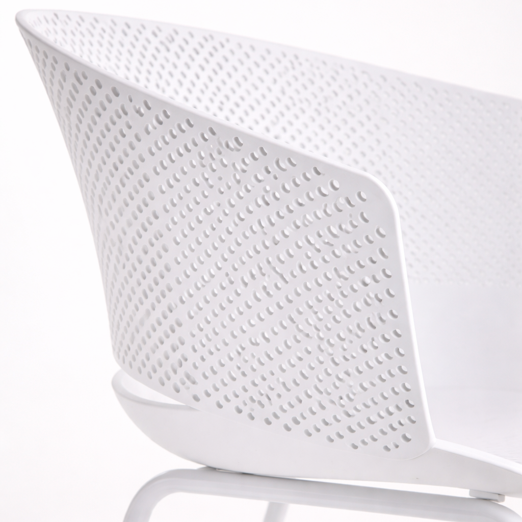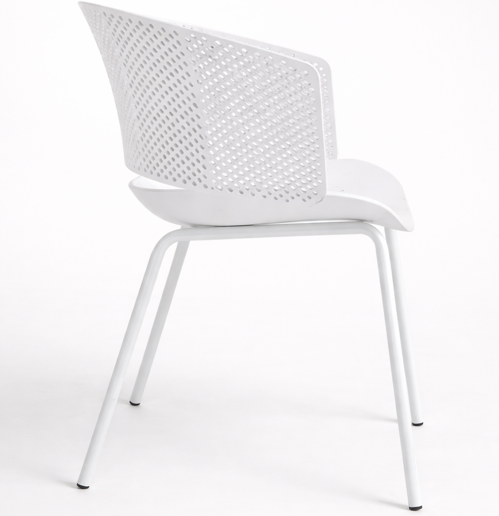 Gracias a su estructura de polipropileno de alta resistencia y su base metálica con pintura electrostática blanca, la Silla Vallarta es perfecta para hogares, terrazas, restaurantes, cafeterías, oficinas y espacios colaborativos.