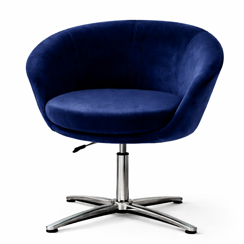La base cromada de cuatro puntas no solo entrega gran estabilidad, sino también un carácter moderno y elegante. Los patines de nylon protegen el piso y permiten un desplazamiento controlado, cuidando cada detalle del entorno.
